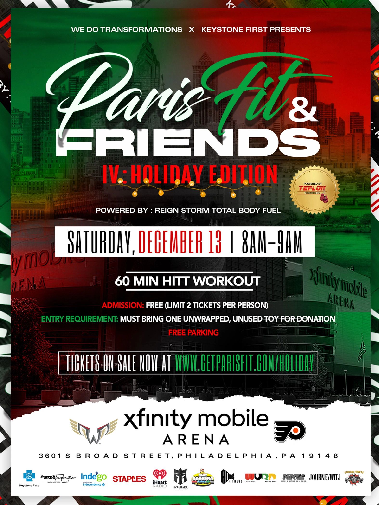 Paris Fit & Friends: IV Holiday Edition is a free community workout designed to bring the city together for an energizing holiday experience, all while giving back to families in need. Taking place on Saturday, December 13 from 8–9 AM at the brand-new Xfinity Arena, the event welcomes guests of all fitness levels for a powerful morning of movement, music, and community spirit. Admission is free with a limit of two tickets per person, and attendees are encouraged to bring one unwrapped, unused toy to support local children during the holiday season. With free parking, giveaways and more, this event blends fitness, joy, and philanthropy, creating a meaningful way to kick off the holidays.